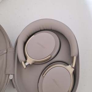 Bose QuietComfort Ultra Wireless Headphones in the elegant Sandstone colorway. These flagship over-ear headphones feature world-class noise cancellation and breakthrough spatial audio for a more immersive listening experience.