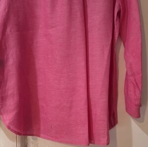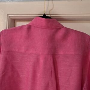 Women's J.McLaughlin Pink Britt Linen Point Collar Long Sleeve Blouse, Size L. Color is Persian Pink.