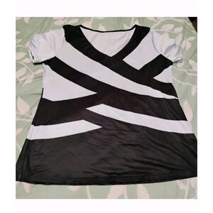 Make a statement with this stylish black and white V-neck top. Perfect for any occasion, its bold design adds a touch of elegance.Like new condition.For measurements please see pictures