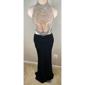 SAU LEE Zara Crystal Embellished Halter Neck Two Piece Maxi Dress Set Size 8