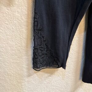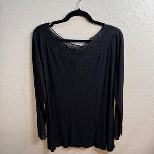 Soft Surroundings Black Lace Trimmed Sheer Neckline Long Sleeve Top Plus Size 2X