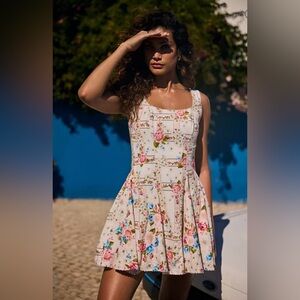 Tags: floral, spring, summer, party, sleeveless, smock, fit & flare, lace, travel, vacation, feminine, flirty, pink, blue, cream