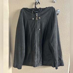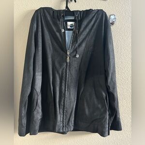 Sleek black jacket with hood. Lightweight and versatile. Ideal for layering.perfect for any occasion great condition check pictures for details