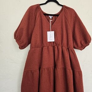 NWT Polagram Thick Rust Orange Puff Sleeve Dress, XL