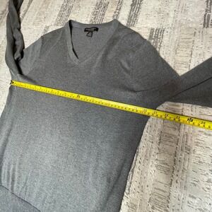 Banana Republic Luxury Blend V-neck sweater in heather gray. A versatile layering piece, this sweater offers a classic silhouette and refined feel. Ribbed cuffs and hem provide a comfortable fit. Ideal for business casual settings or relaxed weekend wear.