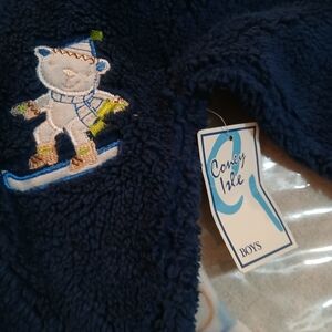 Keep your little one warm and snug in this cozy navy blue one piece. Perfect for playtime or bedtime.