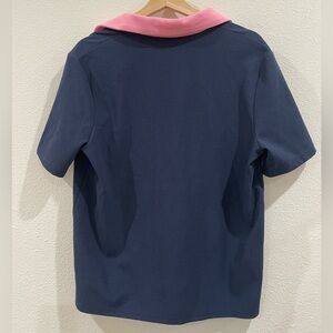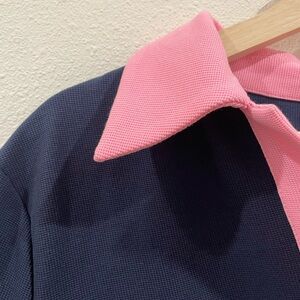 Jil Sander Navy and Pink V-Neck Polo Shirt Size Large