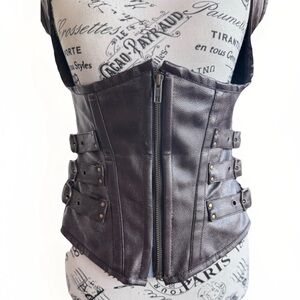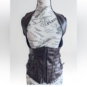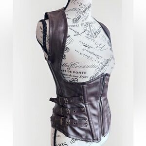 Burleska Corset Zip Up Brown Faux Leather Buckles Steampunk Goth Top 26 *Flawed