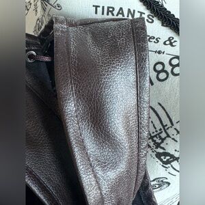 Used… worn with love. The corset ‘boning’ from the bottom part of the top is showing / coming out. The faux leather is slightly peeling and also has some white patchy areas around. Makes it look like the faux leather is dry. Please see pictures for reference. Selling as is. Feel free to message us with any questions or concerns.