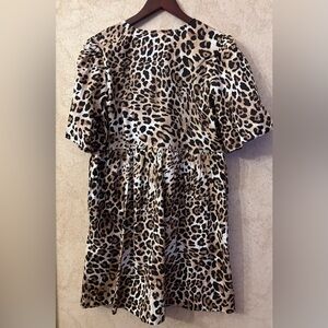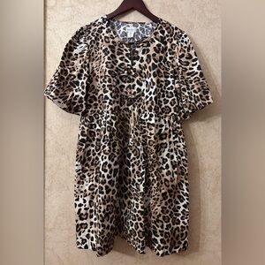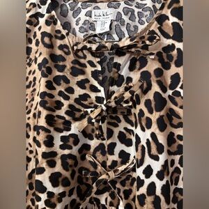 Nicole Miller Leopard Ribbon Bubble Sleeve Dress(Bust 40”Waist 38”Length 35”)