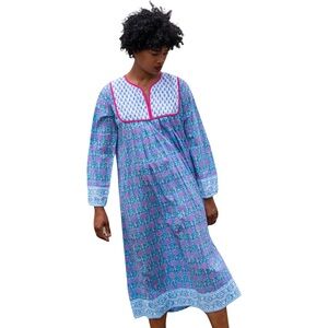 NWT Kitty dress by SZ Blockprints. Lightweight long dress with a blue and pink floral pattern. Features intricate designs and a comfortable fit. have 1 S 2 size M's and one L! all NWT, opened only for photos