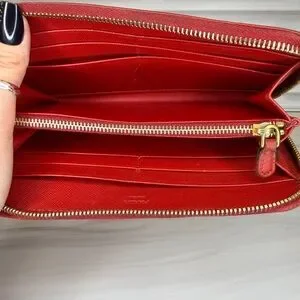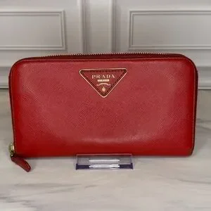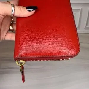 Prada Saffiano Red Zip-Around Long Wallet – Very Good Condition
