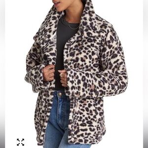 BILLABONG Cozy Days Sherpa Fleece Jacket Leopard Print Snap Closure Size Small