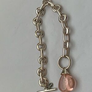 VTG Anne Klein silver circle link bracelet signed AKII pink teardrop charm 80’s