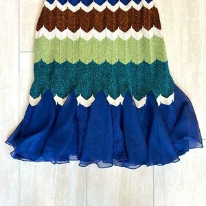 Cache Vintage Knit Chevron Midi Dress Blue/Green/Cream/Brown/Turquoise S
