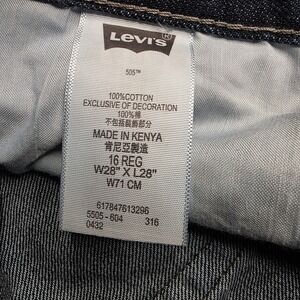 The product is a pair of Levi's 505 Jeans in size Youth 16 Regular, featuring a straight leg style and medium wash denim. These blue jeans are made from a cotton blend material and have a zip closure. They are suitable for casual occasions and are designed for boys in terms of style and fit. The jeans are perfect for everyday wear and activities such as play and school. With the trusted Levi's brand and quality construction, these jeans offer both durability and comfort for young boys.