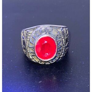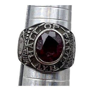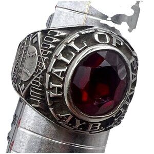 AYB Hall Of Fame Little Majors Cooperstown Ring Red Stone Silver Tone Sz 10 LOOK