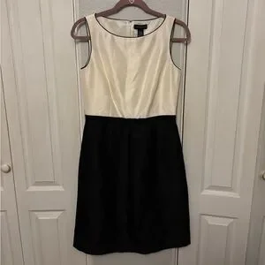 Vintage Ann Taylor 100% Silk Black And White Dress Bow Accent Size 4