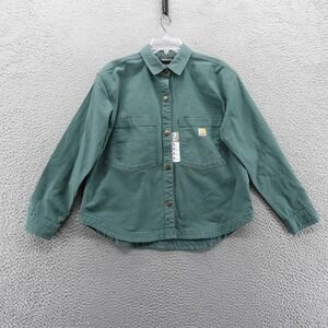 Carhartt Women Rugged Flex Loose Fit Heavyweight Duck Overshirt Green M NEW $80