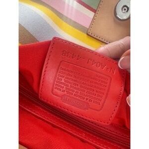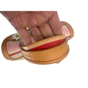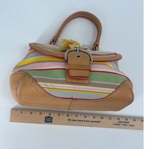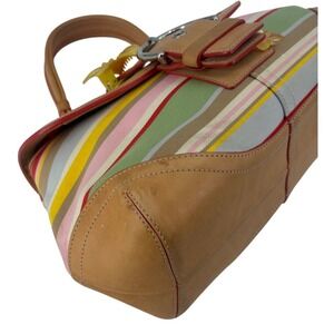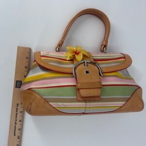 Coach Striped Canvas Leather Trim Shoulder Bag Flower Charm