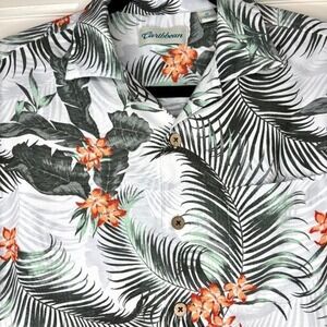 Coastal Palm Print Camp Shirt Men M Tropical Resort Vacation Carribbean