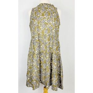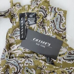 Cassee's New York Paisley Tiered Ruffle Neck Sleeveless Midi Dress Olive Green