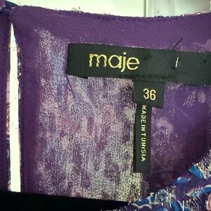 Maje dress with the pretties fabric! Was able to wear with the slit less visible! True to size