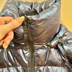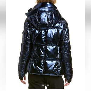 S13 by Sam Women's Kylie Hooded Waterproof Medium Puffer Down Coat Metallic Blue