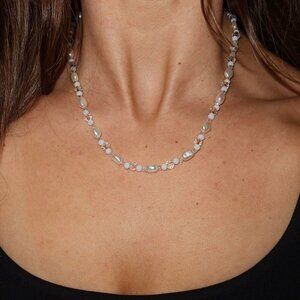 One of a kind. Handmade by me. Freshwater pearls and genuine crystals. Silver plated finishing.