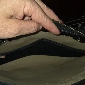 Top zippered closure and has organizational pouch inside bag.