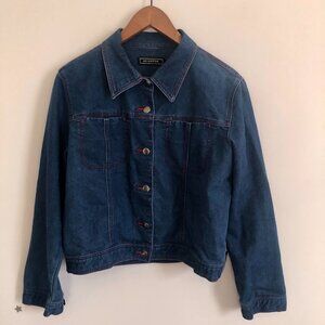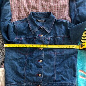 RARE Vintage Y2K AU COTON Brand Denim Jacket Women Size M Red Stitching Cotton