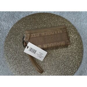 Steve Madden Embossed Logo Handle Wallet 8" x 4" AND Wristlet 9.5" x 7" Sand
