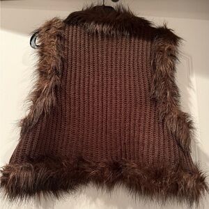Chic sweater vest with faux fur trim. Ideal for layering. Adds warmth and style.