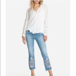 Johnny Was Samira Eyelet Cropped Baby Boot Mid Rise Jeans Embroidered Size 29
