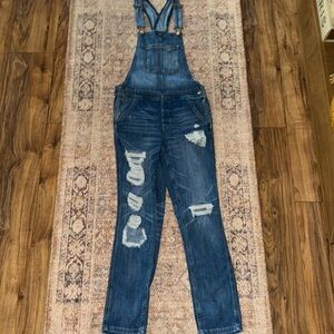 American Eagle Tom Girl Distressed Ripped Blue Womens Overalls Size S