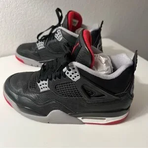 These Nike Air Jordan 4 Retro “Bred” sneakers feature the classic black, red, and gray colorway that never goes out of style. A must-have for Jordan collectors or anyone who loves a clean, classic sneaker.
