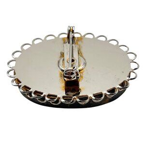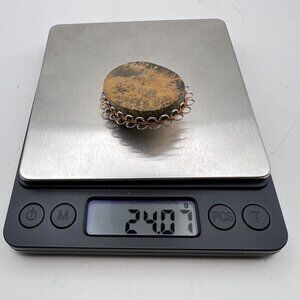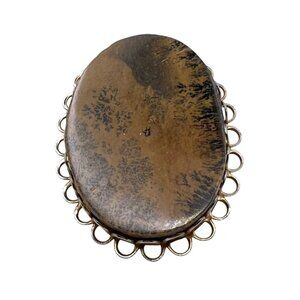 Vintage Dendritic Jasper Brooch Oval Stone Gold Tone Artisan Boho Cottagecore