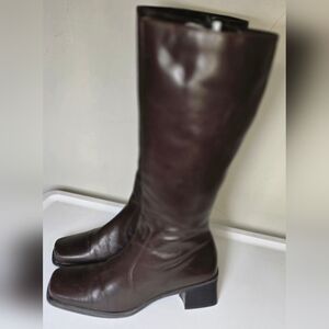 Caressa Dark Brown Tall Leather Heeled Boots 8 1/2