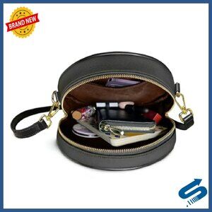 Premium Vegan Leather Circle Crossbody Bag Adjustable Strap Zipper Closure
