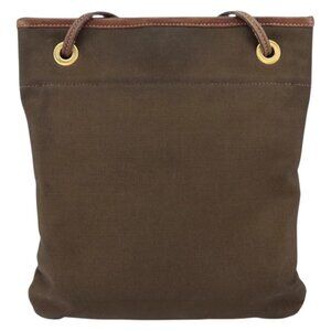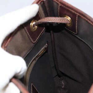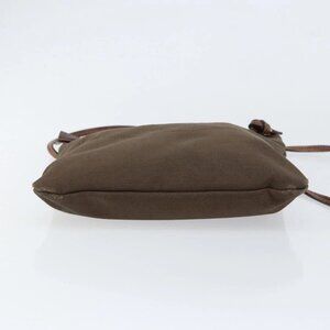 PRADA Shoulder Bag Canvas Dark Brown gold Auth ka080