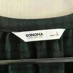 Sonoma Women’s Hunter Green Black Plaid Button Front Flannel with Ruffles