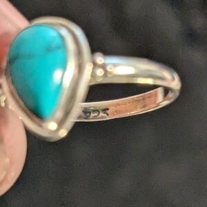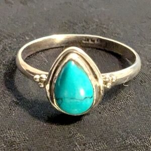 This elegant silver ring features a stunning turquoise stone, perfect for adding a pop of color to any outfit. Its sleek design makes it a versatile accessory for any occasion.