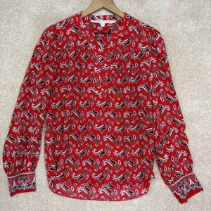 Veronica Beard Silk Blouse Size 8 Red Abbie Paisley Top
