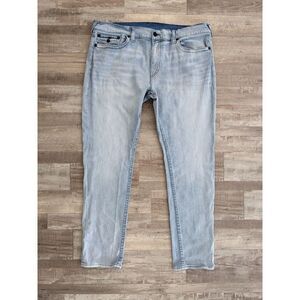 True Religion Men's Geno Flap Big T Relaxed Slim Fit Light Wash Jeans 42x33