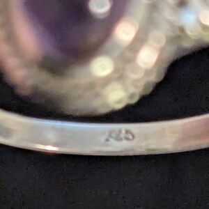 This elegant ring features a stunning purple amethyst gemstone set in a beautifully crafted sterling silver band. Perfect for adding a touch of sophistication to any outfit.