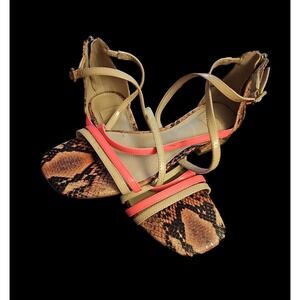 Louise et Cie Patent-Leather Neon Pink Neutral Strappy Snake Print Sandal Sz6 A5. Condition is Pre-owned. Shipped with USPS Ground Advantage.