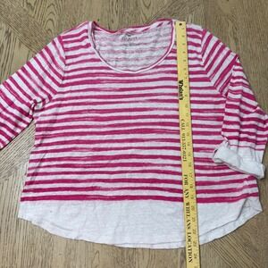 Talbots Petites XLP Pink White Striped Linen Cotton Blend 3/4 Sleeve Top