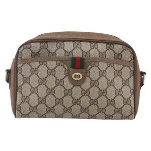 GUCCI GG Supreme Web Sherry Line Bag PVC Beige Gold 116 02 089 Auth BA7464