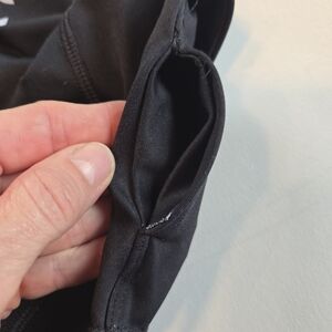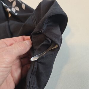 These Noli Tree of Life yoga leggings will stand out at the gym or the studio. A sleek, yet comfy fit that's easy to move in. There is a small key pocket on the inside of the waist band, the fabric inside that pocket is not sewn all the way down, and a small amount of wear along the back butt seam - both shown in photos.