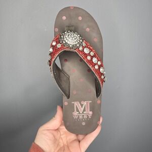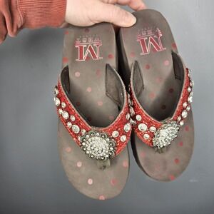 Montana West Brown/Orange Foam Wedge Sandal Rhinestone Size 6 Western